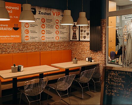 To mały, ale bardzo klimatyczny lokal w industrialnym stylu. Znajdujemy się w popularnej bialskiej hurtowni budowlanej– Bricoman.
